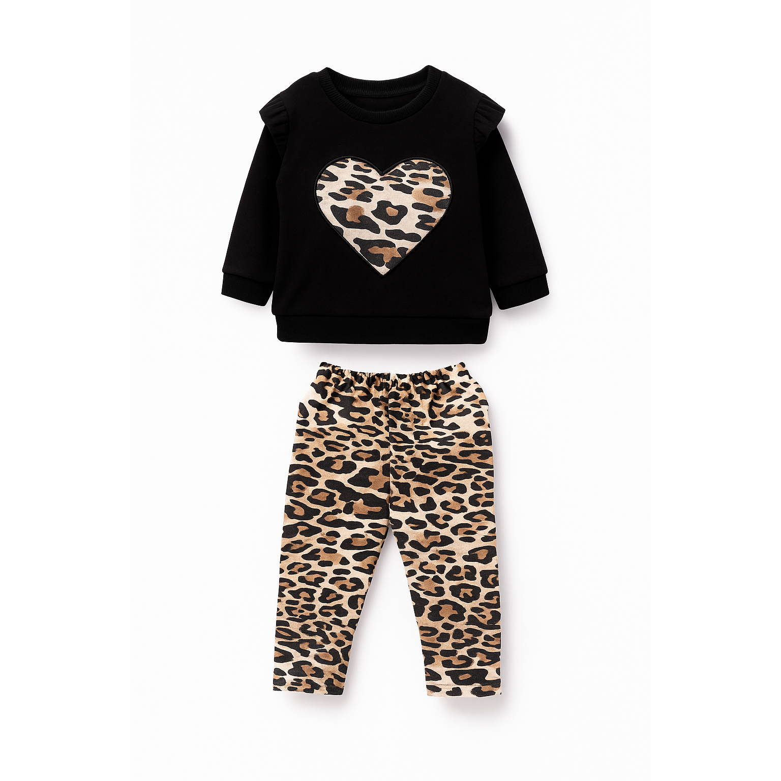 Leopard Print Heart Detailed Baby Kids Top and Bottom 2-Piece Set