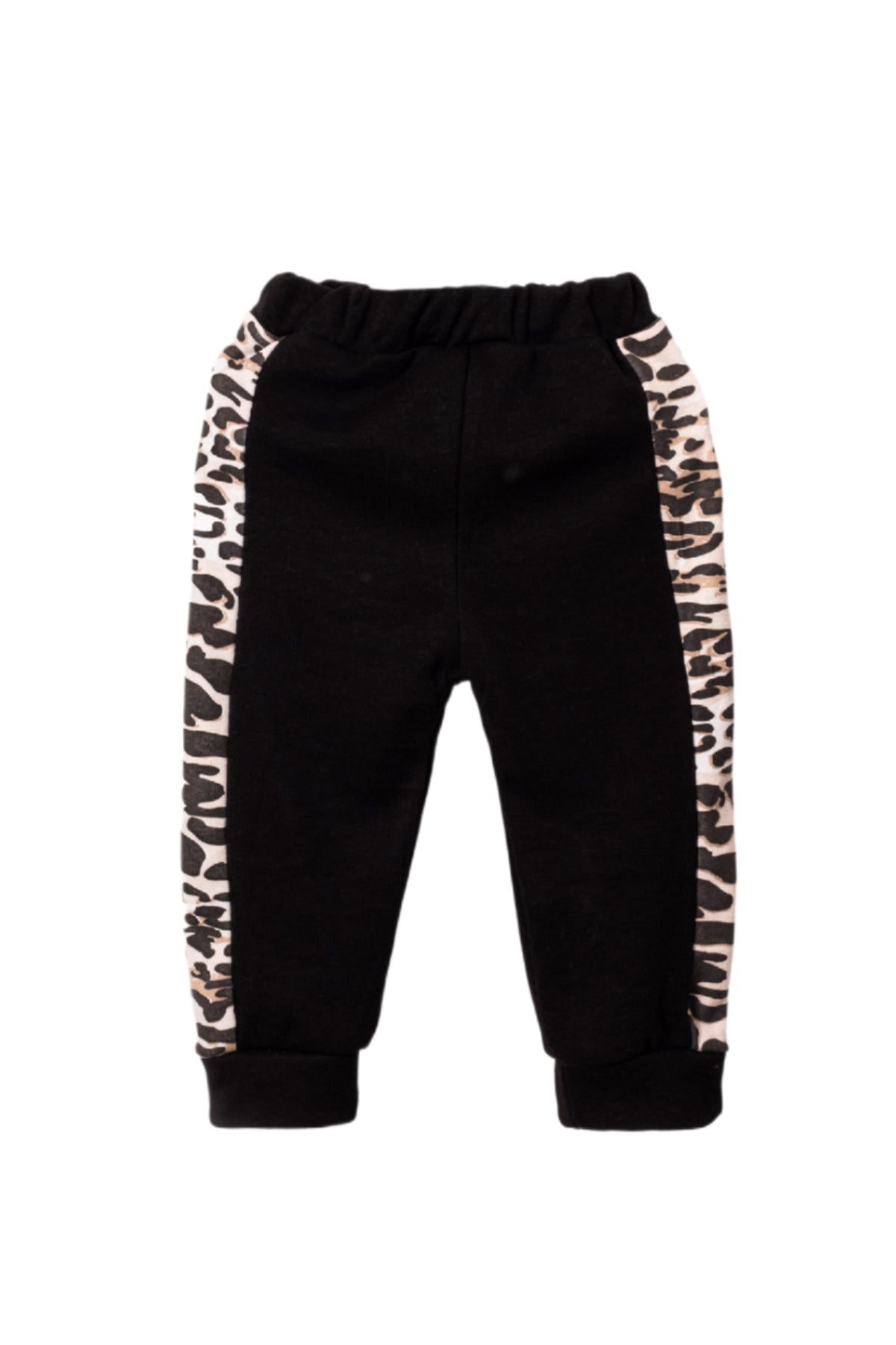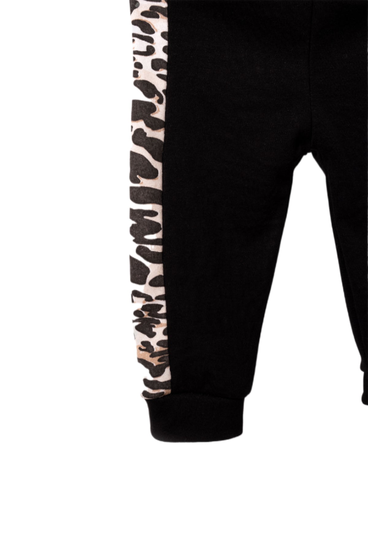 This black 2-piece set features a charming leopard print design with delicate ruffled detailing on both the top and bottom, combining style and comfort for your baby girl. Crafted to provide a soft, gentle fit, it allows ease of movement while keeping her looking adorable. Perfect for everyday wear or special occasions, this set is an expert choice for blending trendy patterns with practical comfort.