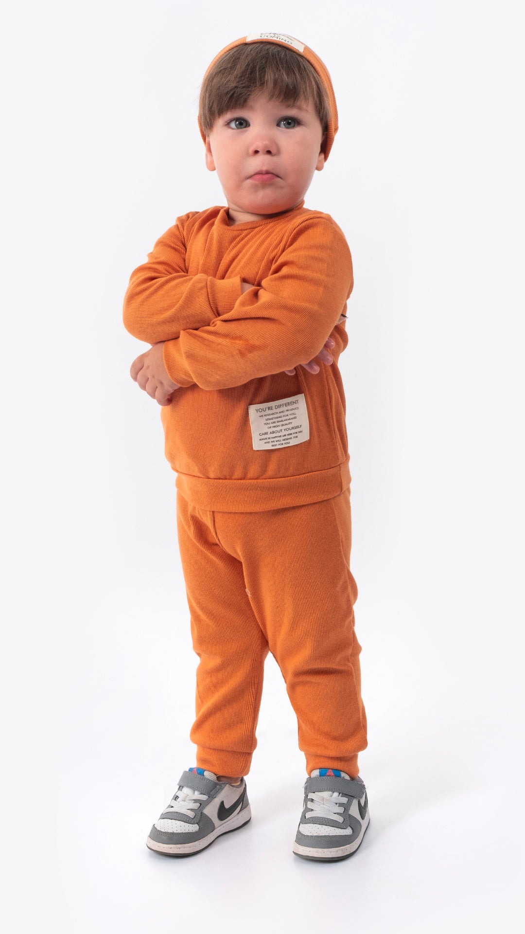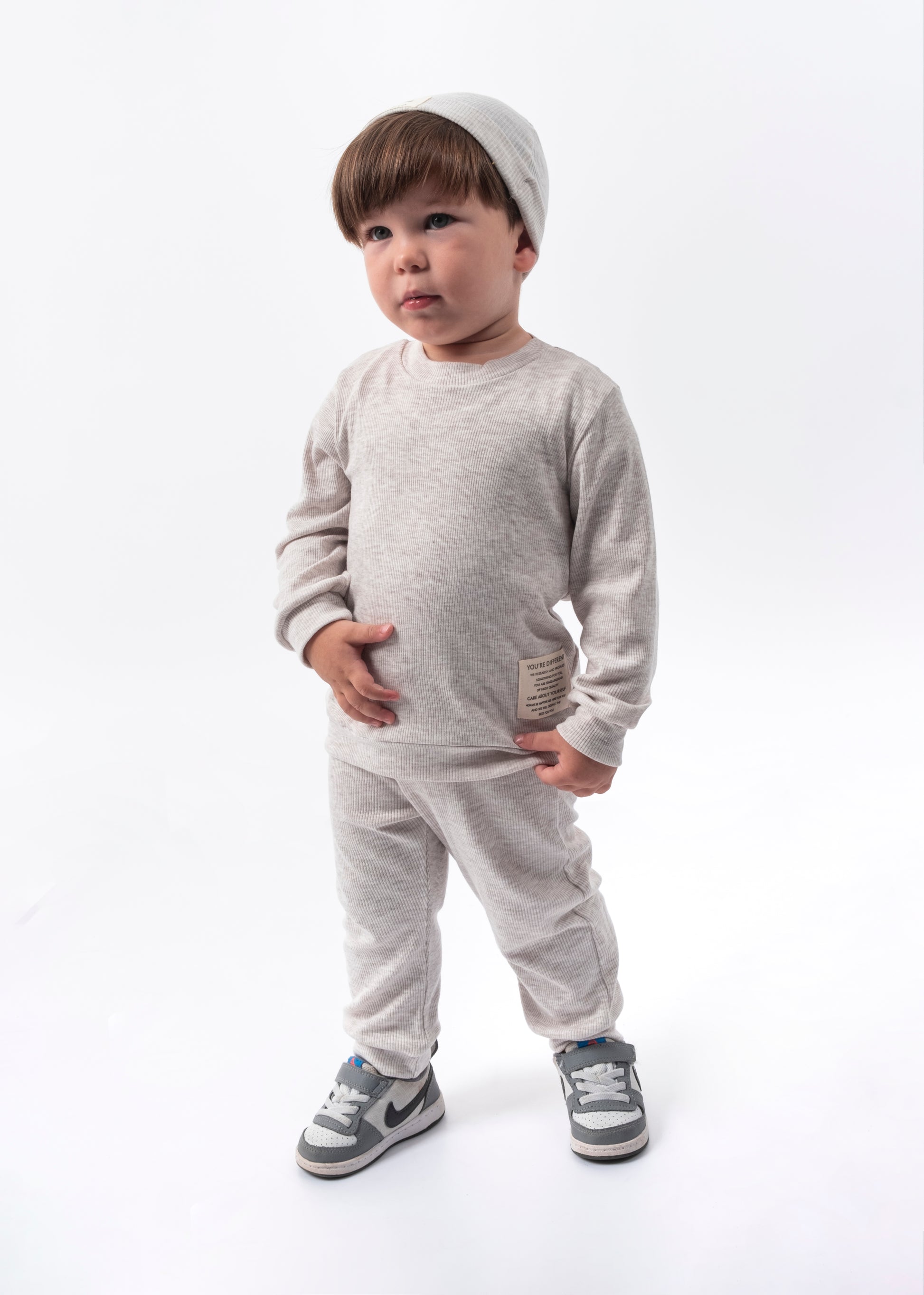This unisex 3-piece set features a finely detailed coat of arms design on a textured waffle fabric, ensuring both style and comfort. The coordinated top and bottom pieces offer a balanced fit suitable for all children, while the breathable material promotes ease of movement and temperature regulation. Perfect for layering or standalone wear, this set combines classic heraldic charm with everyday practicality for versatile kids' fashion.