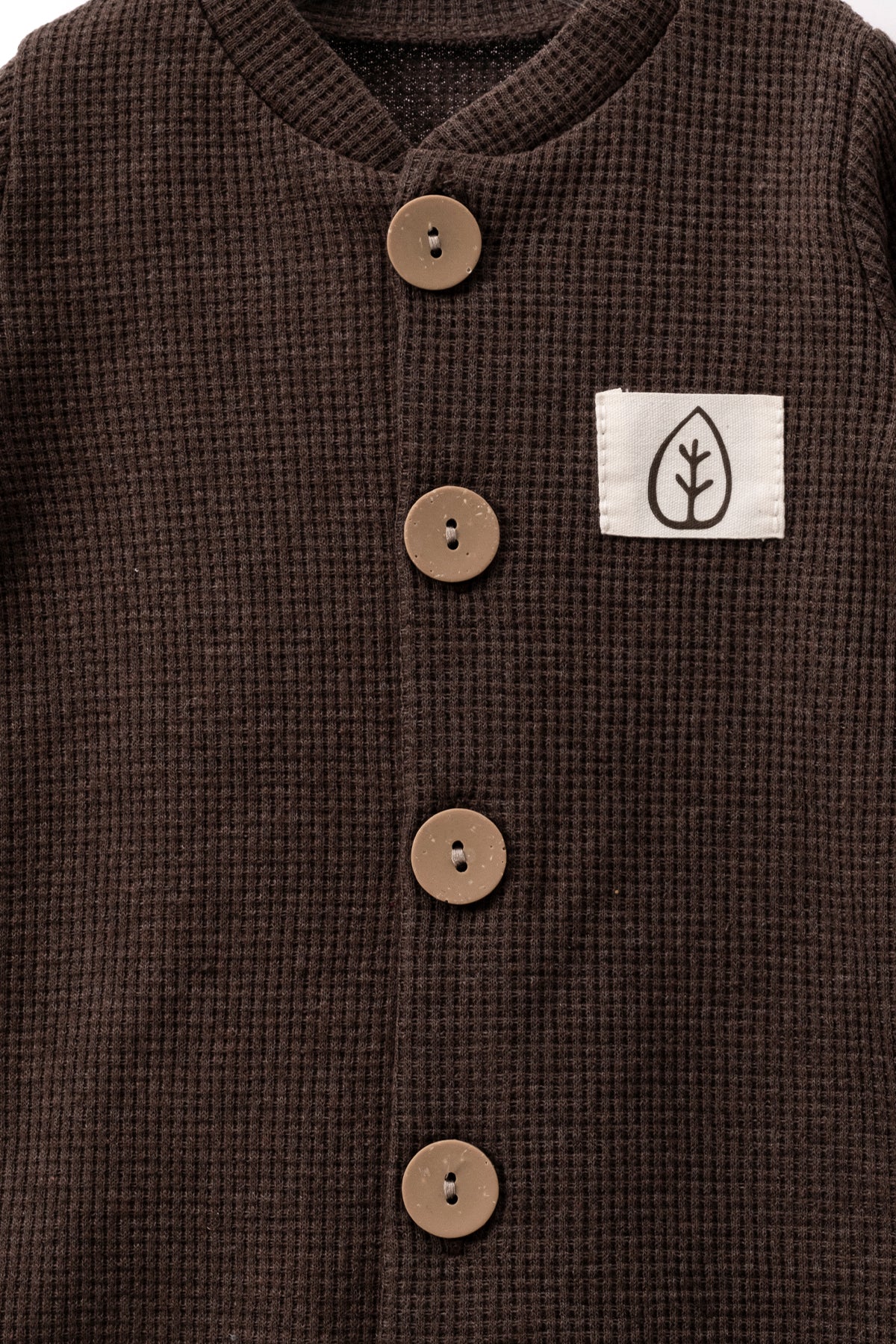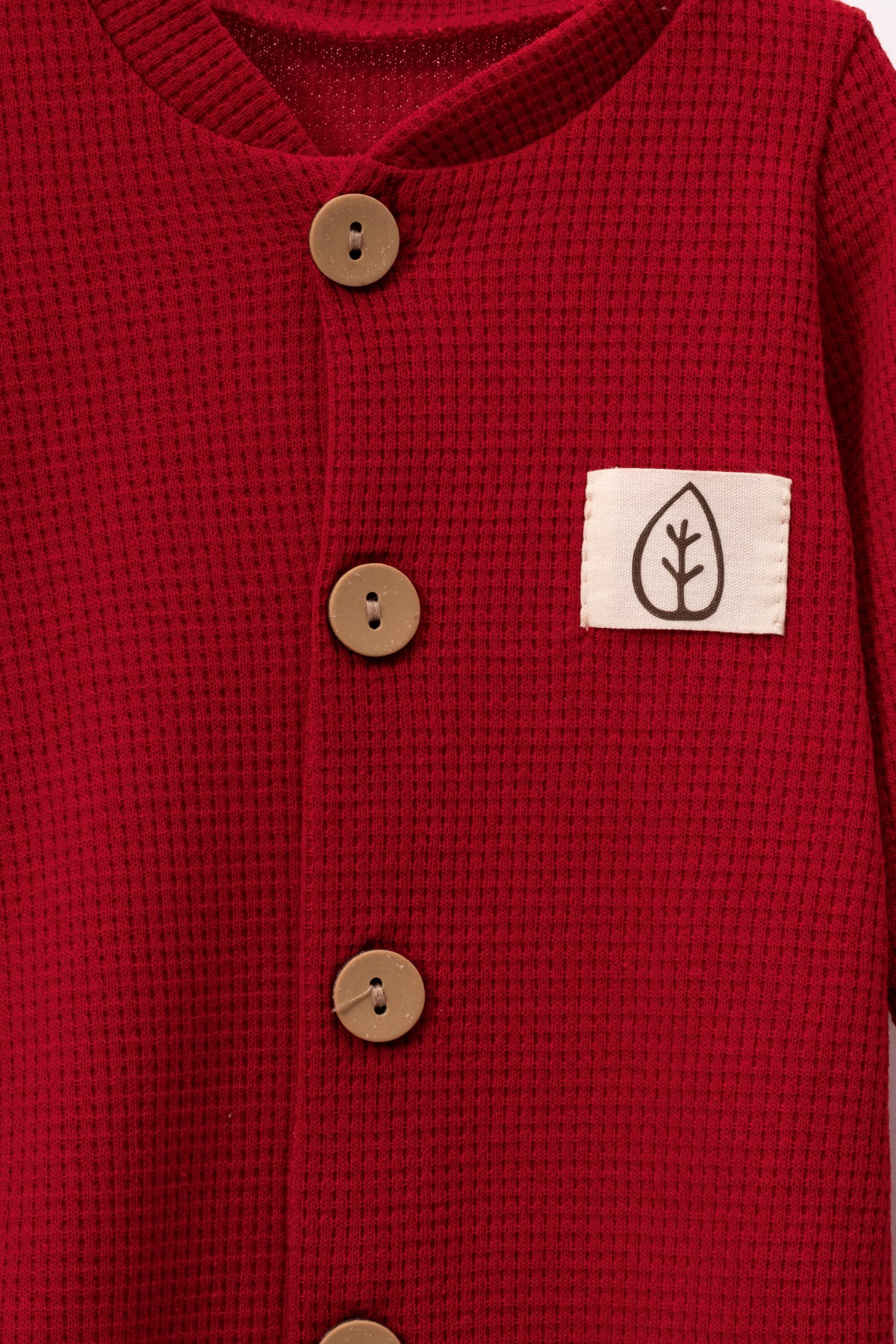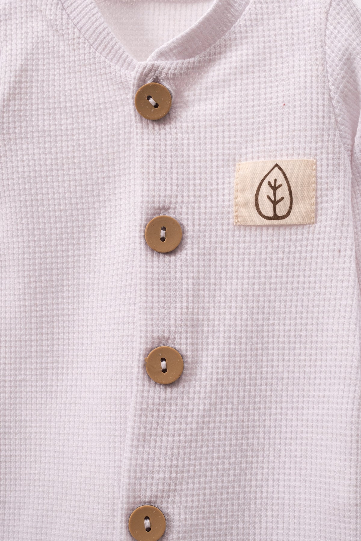 Crafted for comfort and style, this unisex baby jumpsuit features a unique waffle texture that enhances breathability and softness. Detailed with charming wooden buttons and a matching visual hat, it offers an effortlessly stylish look while ensuring easy dressing. Ideal for delicate skin, this jumpsuit combines practicality with a fashionable touch, making it a smart choice for your baby’s everyday wardrobe.